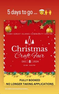 5 days to go for our Christmas Craft Fair ๐๐งโ๐2024-12-032024-12-03https://cobhcommunitycentre.ie/wp-content/uploads/2016/08/200.pngCobh Great Island Community Centrehttps://cobhcommunitycentre.ie/wp-content/uploads/2016/08/200.png200px200px