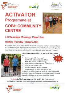 Activator Programme at Cobh Community Centre starting Thursday February 28th from 10am – 11am for 4 weeks.