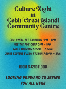 Culture Night here inย @cobhcommunitycentre_ย from 4 – 8pm