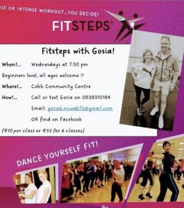 Come and join us every Wednesday at 7:30pm Official Cobh – Great Island Community Centre .Dance yourself fit!!Strictly fun!