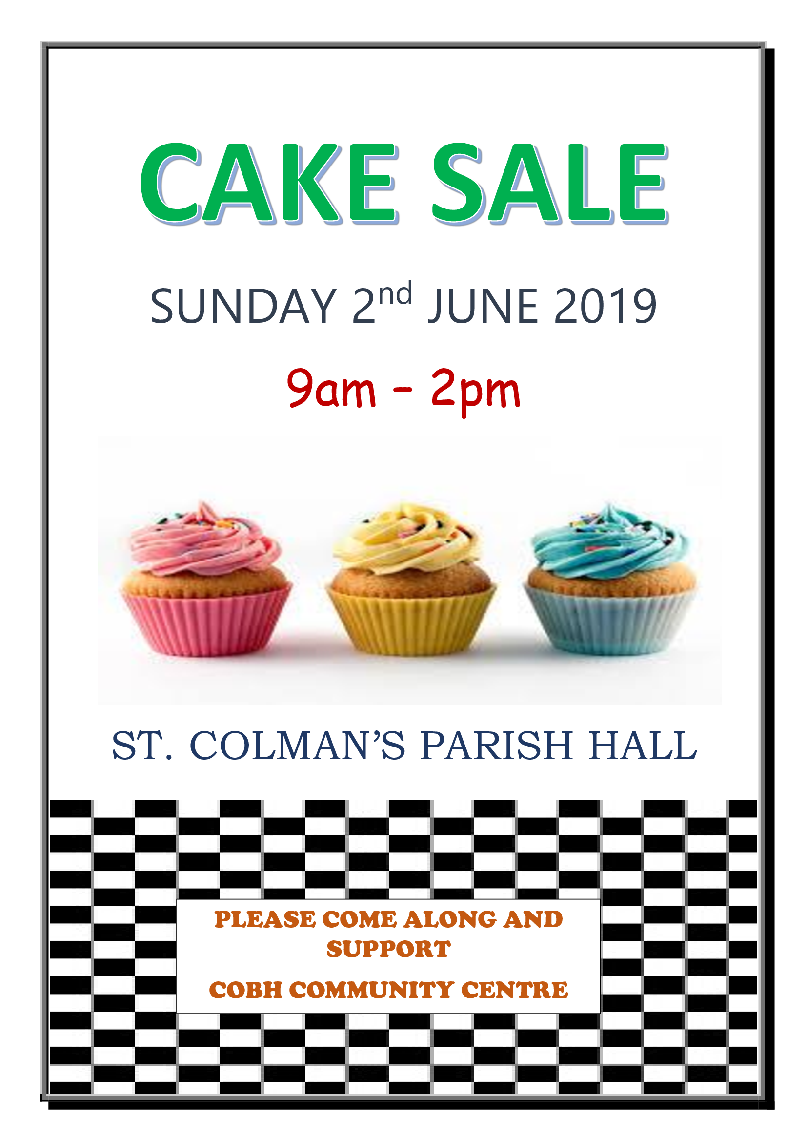 Cake Sale 2nd June in St. Colman’s Parish Hall
