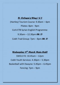 Mon – Sun 15th March Timetable ๐Ÿ˜€