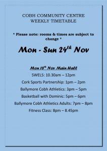 Mon – Sun 24th November Timetable 😀2019-11-182019-11-15https://cobhcommunitycentre.ie/wp-content/uploads/2016/08/200.pngCobh Great Island Community Centrehttps://cobhcommunitycentre.ie/wp-content/uploads/2016/08/200.png200px200px