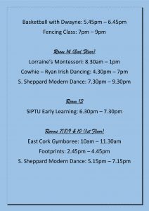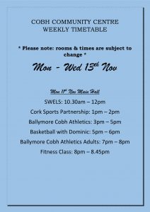 Mon – Wed 13th November Timetable ๐2019-11-112019-11-08https://cobhcommunitycentre.ie/wp-content/uploads/2016/08/200.pngCobh Great Island Community Centrehttps://cobhcommunitycentre.ie/wp-content/uploads/2016/08/200.png200px200px