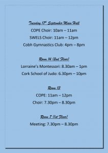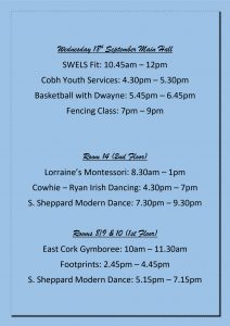 Mon – Wed 18th September Timetable ๐2019-09-162019-09-12https://cobhcommunitycentre.ie/wp-content/uploads/2016/08/200.pngCobh Great Island Community Centrehttps://cobhcommunitycentre.ie/wp-content/uploads/2016/08/200.png200px200px