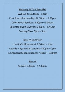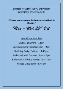 Mon – Wed 23rd October Timetable ๐2019-10-212019-10-17https://cobhcommunitycentre.ie/wp-content/uploads/2016/08/200.pngCobh Great Island Community Centrehttps://cobhcommunitycentre.ie/wp-content/uploads/2016/08/200.png200px200px