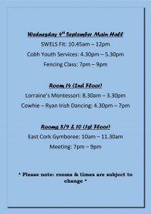 Mon – Wed 4th September Timetable ๐2019-09-022019-08-29https://cobhcommunitycentre.ie/wp-content/uploads/2016/08/200.pngCobh Great Island Community Centrehttps://cobhcommunitycentre.ie/wp-content/uploads/2016/08/200.png200px200px