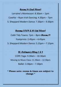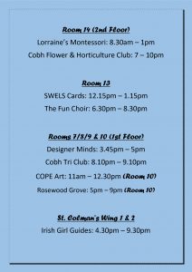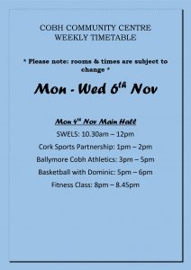 Mon – Wed 6th November Timetable ๐2019-11-042019-10-31https://cobhcommunitycentre.ie/wp-content/uploads/2016/08/200.pngCobh Great Island Community Centrehttps://cobhcommunitycentre.ie/wp-content/uploads/2016/08/200.png200px200px