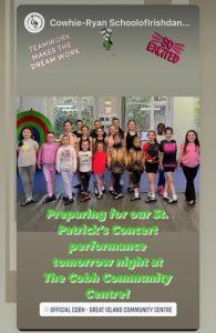 Preparing for our St. Patrick’s Concert later with Cowhie – Ryan Irish Dancing