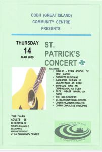 St. Patrick’s Concert March 14th from 7pm