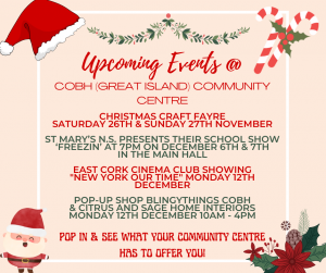 Upcoming events at @cobhcommunitycentre_ ๐คฉ2022-12-082022-12-08https://cobhcommunitycentre.ie/wp-content/uploads/2016/08/200.pngCobh Great Island Community Centrehttps://cobhcommunitycentre.ie/wp-content/uploads/2016/08/200.png200px200px