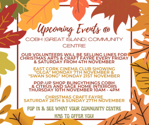 Upcoming events at @cobhcommunitycentre_ ๐คฉ2022-11-032022-11-03https://cobhcommunitycentre.ie/wp-content/uploads/2016/08/200.pngCobh Great Island Community Centrehttps://cobhcommunitycentre.ie/wp-content/uploads/2016/08/200.png200px200px