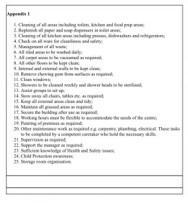 The Caretaker will report to the Manager and will be responsible for the daily upkeep of the Community Centre.