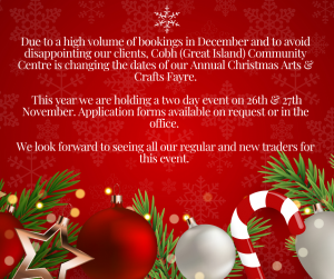 We have changed our Annual Christmas Arts & Crafts Fayre date from December 4th to November 26th & 27th ๐ ๐